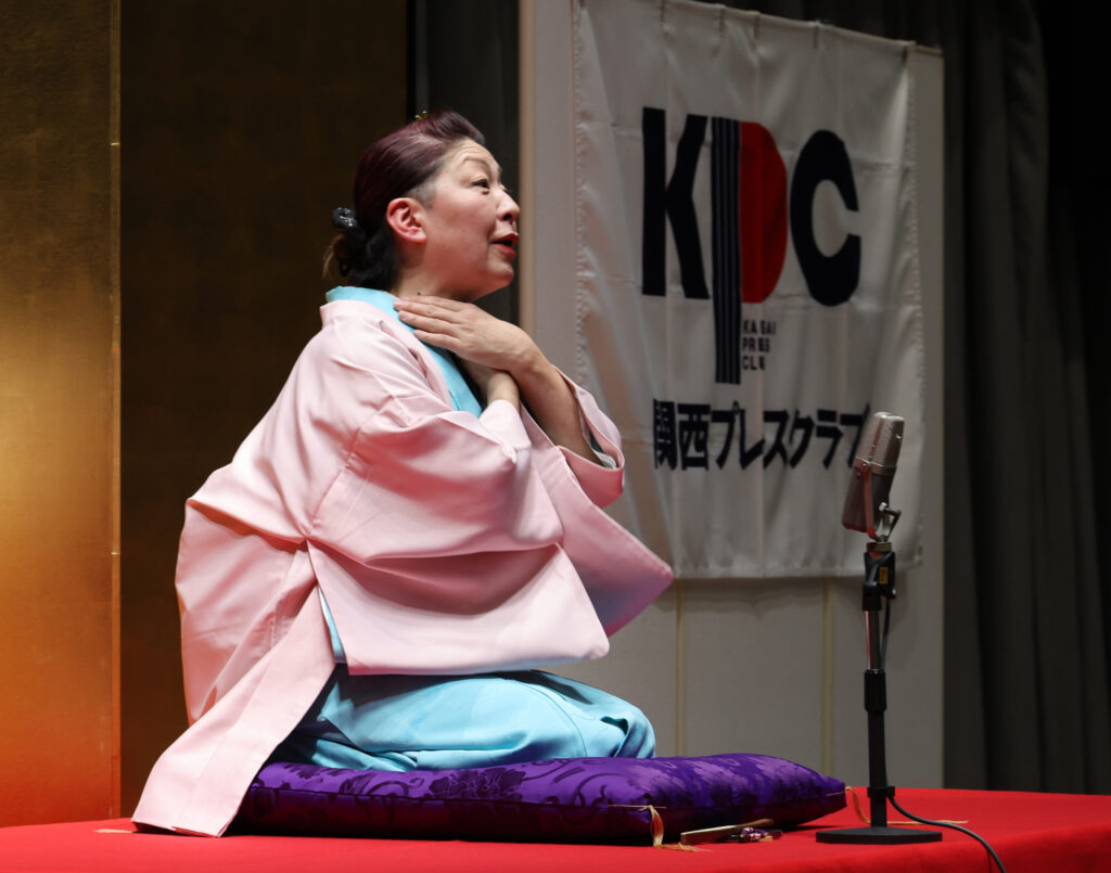 関西プレスクラブの新年会員交流会が1月20日、落語家の桂あやめさんをゲストに迎え、ホテルロイヤルクラシック大阪(大阪市中央区)で開かれた。身近な女性を主人公にしたネタの創作など、落語の世界に風穴を開けてきたあやめさん。この日は「落語家、どんな経験も笑いに」を題目に、落語家への道のりや、自宅で凶悪犯と遭遇した体験などをネタに独演会を行い、会員ら50余人に笑いを届けた。